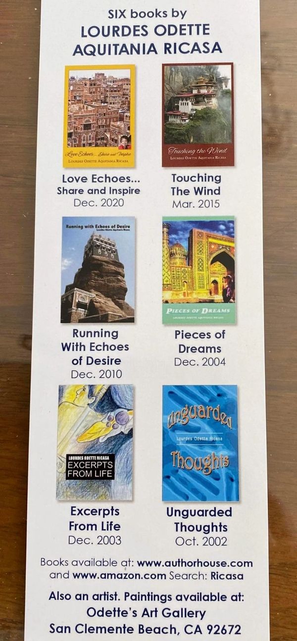 SIX (6) books published: www.amazon.com -  search:  books by Odette Ricasa. Titles: